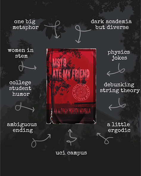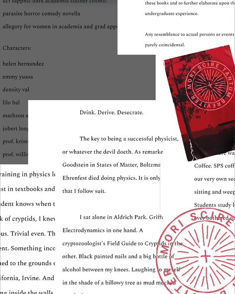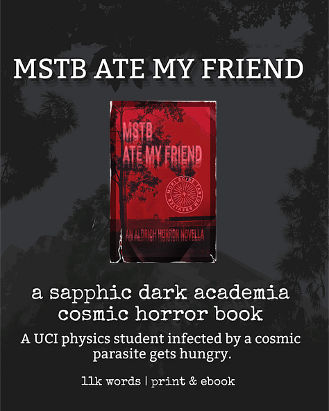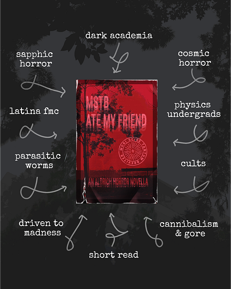 A sapphic dark academia cosmic parasite horror comedy novella.